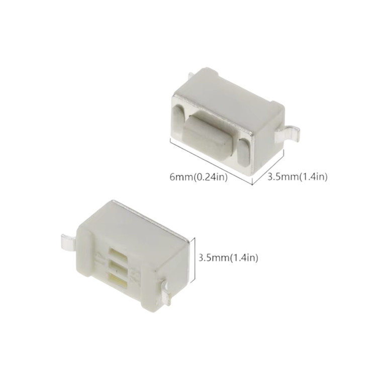 دارای دو پایه نوع SMD بوده و ارتفاع دکمه آن 0.5 میلیمتر میباشد. از این قطعه در ضبط ماشین استفاده میشود.